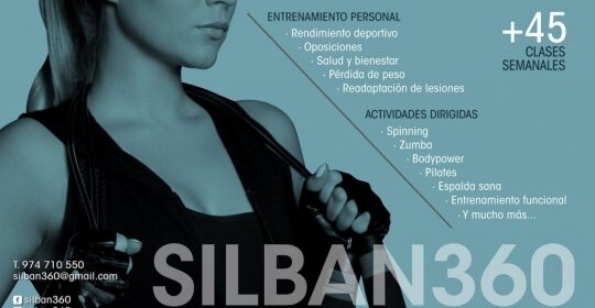 Silban360 es tu centro deportivo, especializado en actividades de fitness, salud y entrenamiento. Silban360 ofrece servicios deportivos, tanto en su instalación en la calle Teruel de Huesca, como en centros deportivos, clubes, asociaciones, etc. En nuestro estudio ofrecemos 40 actividades de fitness semanales para nuestros miembros. Ofrecemos un servicio completo de entrenamiento personal con diversas modalidades que se adaptan a las necesidades de cada deportista, club, empresa, etc.