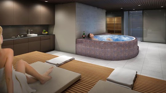 Per divertirsi e sentirsi bene. Materiali nobili, design solido, lo spettacolare, con un bagno di salamoia coperto di vetro con vista sul cielo libero, il vasto mondo della sauna.
