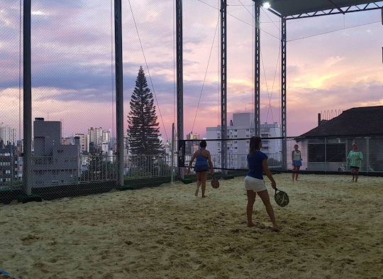 Experiência fantástica: Academia Top e inovadora, a 1° a ter uma quadra de BEACH TENNIS, FUTVOLEI E BEACH VOLLEY coberta com teto retrátil.