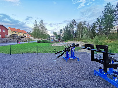 Fantastisk upplevelse: Riktigt bra andra generationens utegym där man kan reglera vikterna efter hur lätt eller tungt man vill köra. Ligger i ett mysigt villaområde.