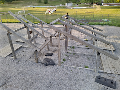 Fantastisk upplevelse: Hammer-like workout equipment made of wood. Very nice place. Football and volleyyball fields, children playground.